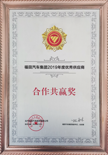 热烈祝贺昌辉荣获福田汽车集团2019年度优秀供应商“合作共赢奖”